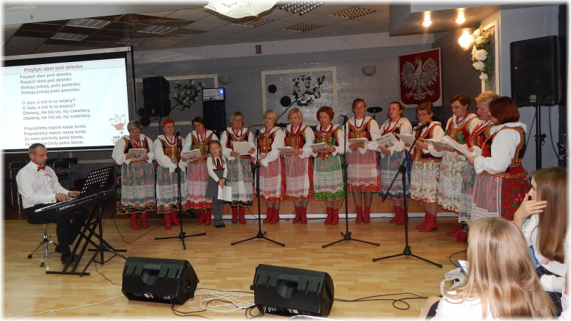 Sala bankietowa Remizy OSP w Charsznicy wypełniła się dosłownie po brzegi. Nie zabrakło gości honorowych, którymi byli m. in. wójt gminy Charsznica Jan Żebrak, przewodniczący rady gminnej Zdzisław Uchto, przewodniczący rady powiatu Mariusz Wolny, dyrektor GOK w Charsznicy Szymon Kubit, ksiądz kanonik Marek Luty, ksiądz kanonik Władysław Ogonowski, sekretarz Gminy Barbara Beliczyńska, przedstawiciele rady gminnej, tej obecnej i nowo wybranej, a wszystko okraszone bardzo pięknym i solidnie przygotowanym dwugodzinnym programem artystycznym, na który złożyły się bardziej, bądź mniej znane pieśni patriotyczne. Publiczności wyświetlano teksty utworów na ekranie, tak więc śpiewać mógł każdy, kto tylko miał na to ochotę.