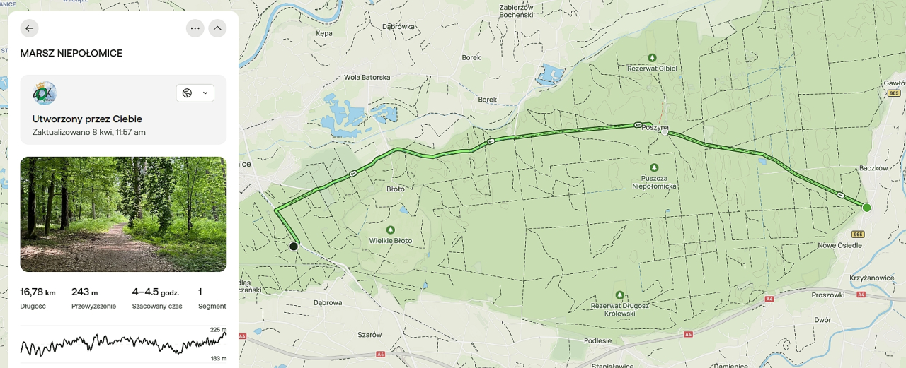 - wymarsz w kierunku Niepołomic (16 km);